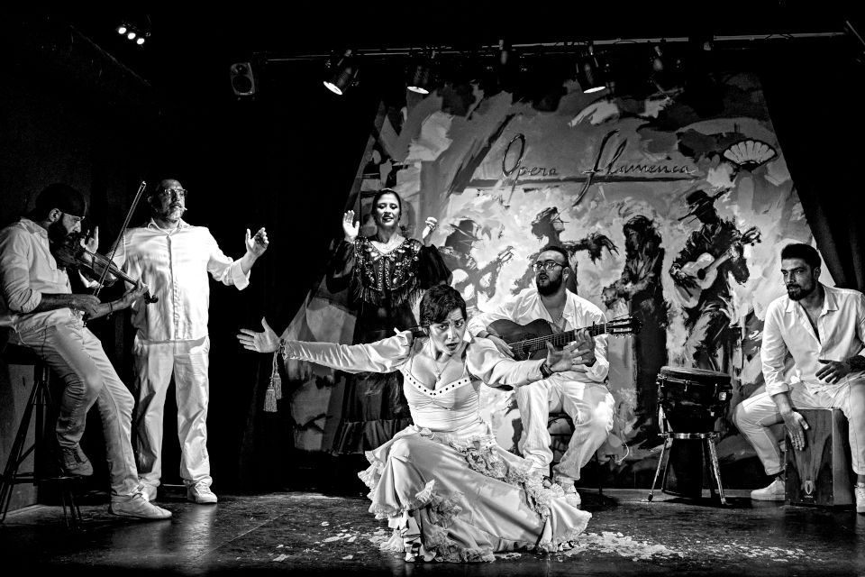 Tablao Opera Flamenco se ubica en el pintoresco barrio de San Bernardo en el pleno corazón de Madrid. Su cede es un teatro flamenco compartiendo edificio con una taberna tradicional, un lugar, donde se fusionan las tradiciones y la modernidad, y donde se nacen las formas del arte más expresivas y conmovedoras.